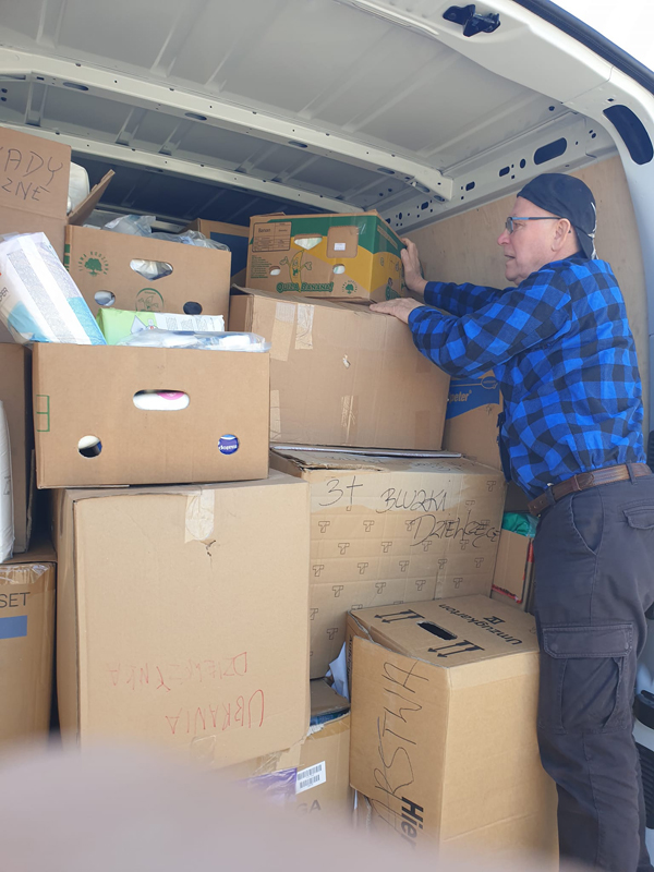 "Razem możemy więcej". Wyjazd nr 9 Humanitarny 22 i 23 kwietnia na Ukrainę. Dziękujemy Wypożyczalni samochodów KANGOOR Pan Grzegorz Markunas, Sieci sklepów Merkus Pan Marek Theus, Firmie CITRONEX Pani Małgosi Wójcik, Rodzinie Państwa Pająkowskich przedstawicielom firmy HUBER + SUHNER Sp. z o.o., CARITAS GDAŃSK, Panu Adam Baczewski i najmłodszemu wnukowi Antosiowi Letniowskiemu za pomoc przy załadunku. Oczywiście jadą Pan Stasiu Wojcieszenko i Pan Władek.