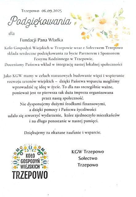 Dotarło do nas kolejne podziękowanie. Dziękujemy